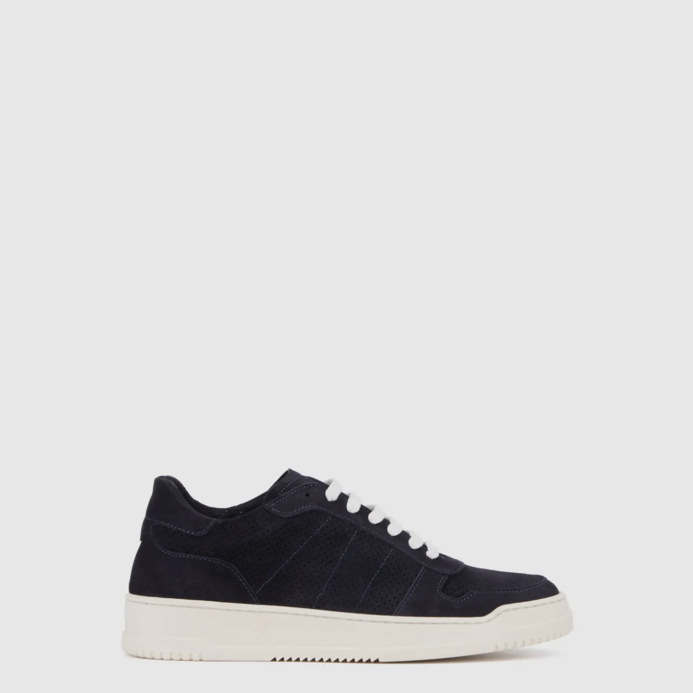 Designed in solid black or white, the Cristo lace-up sneaker is made to mix and match. Zigzag leather details form a distinctive angular pattern; designed in tumbled calf, nappa leather, or suede an understated logo detail rounds out the look.