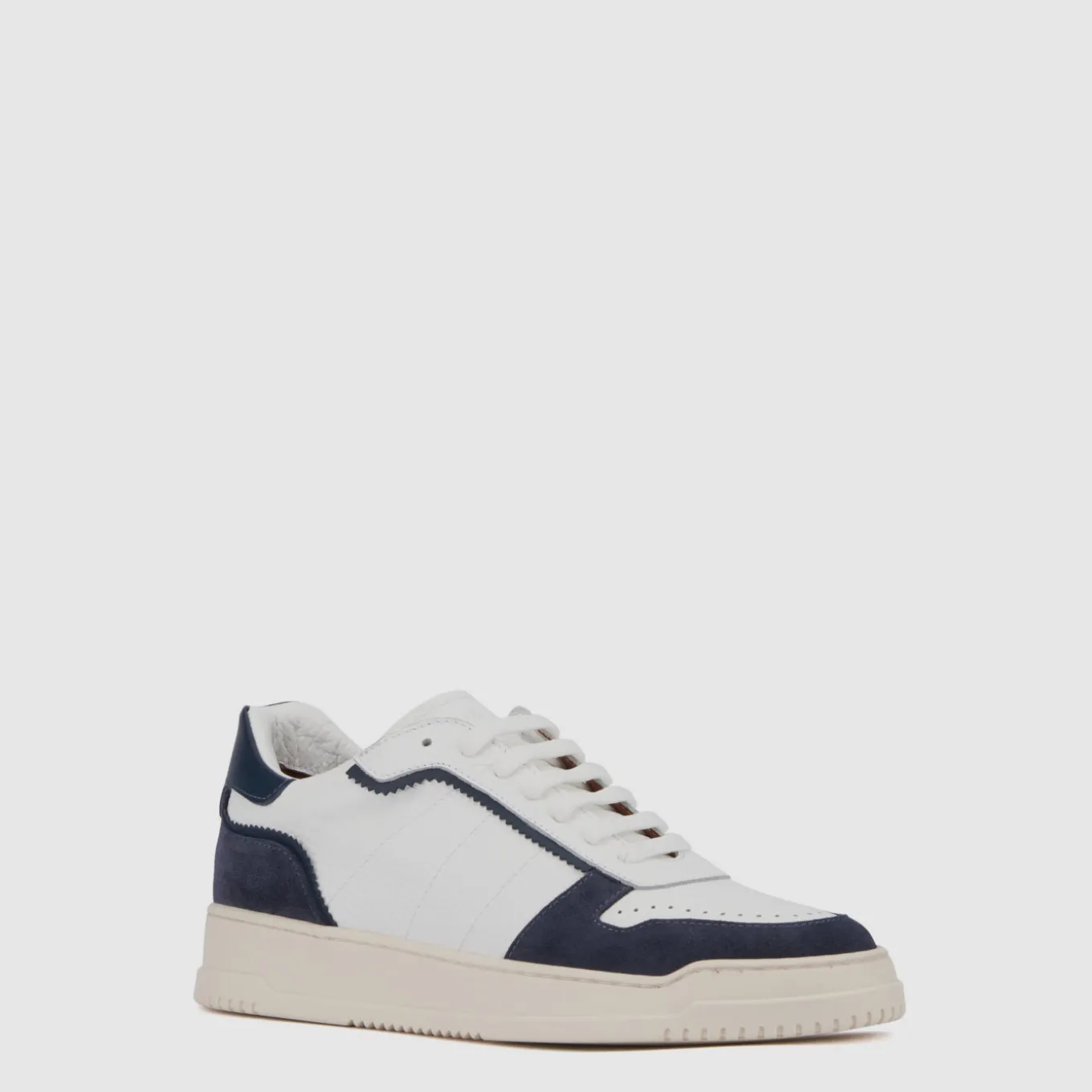 Designed in solid black or white, the Cristo lace-up sneaker is made to mix and match. Zigzag leather details form a distinctive angular pattern; designed in tumbled calf, nappa leather, or suede an understated logo detail rounds out the look.