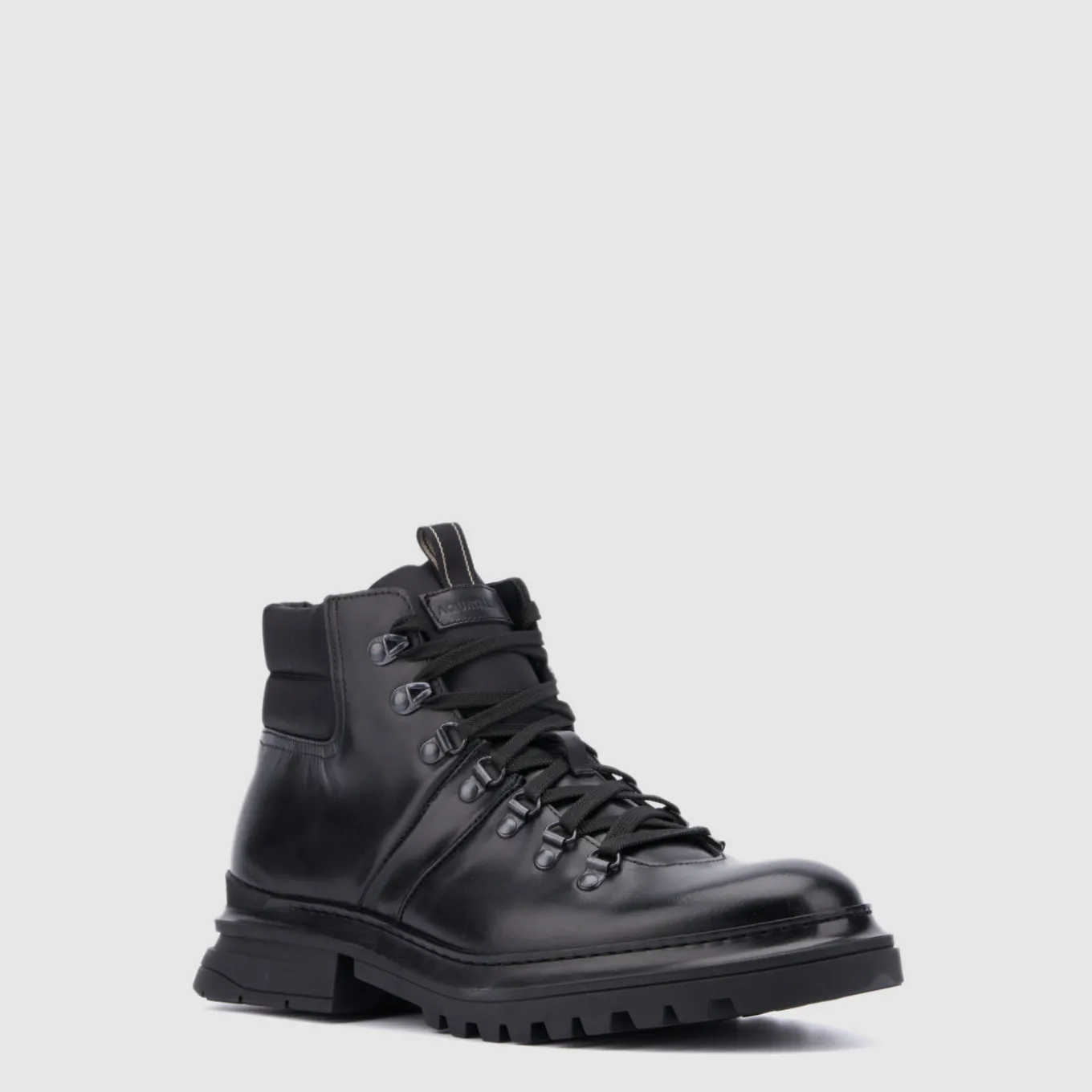 Designed in waxed suede/nappa (grey or cognac) or calf leather/nylon (black), the Edwin boot conveys a sturdy sensibility. With D-ring hardware and a lace-up closure, it features a nylon loop and padded back counter. The logo detail adds a subtle accent.