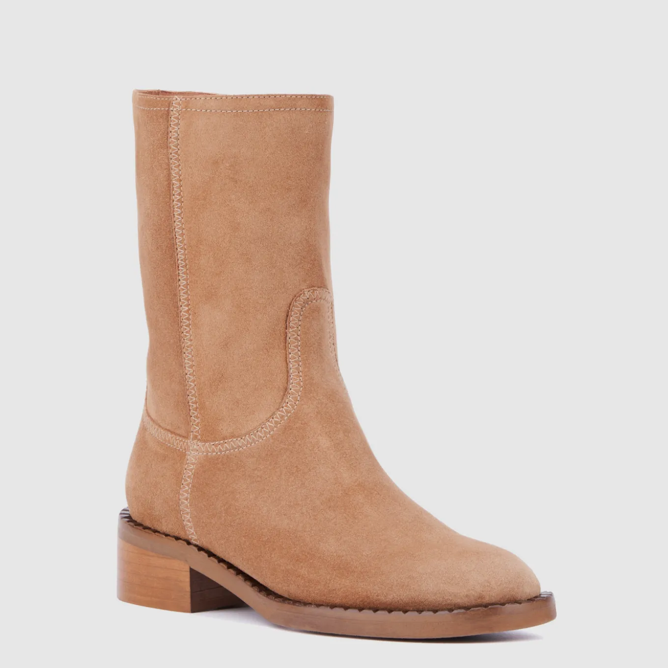 Equally chic with a long sweater dress or tailored pant, a mid-calf silhouette makes the Georgetta boot endlessly versatile. Thanks to a round-toe silhouette and low heel, it’s equal parts comfortable and walkable. Stitched embellishment enhances the look as an understated finishing touch.
