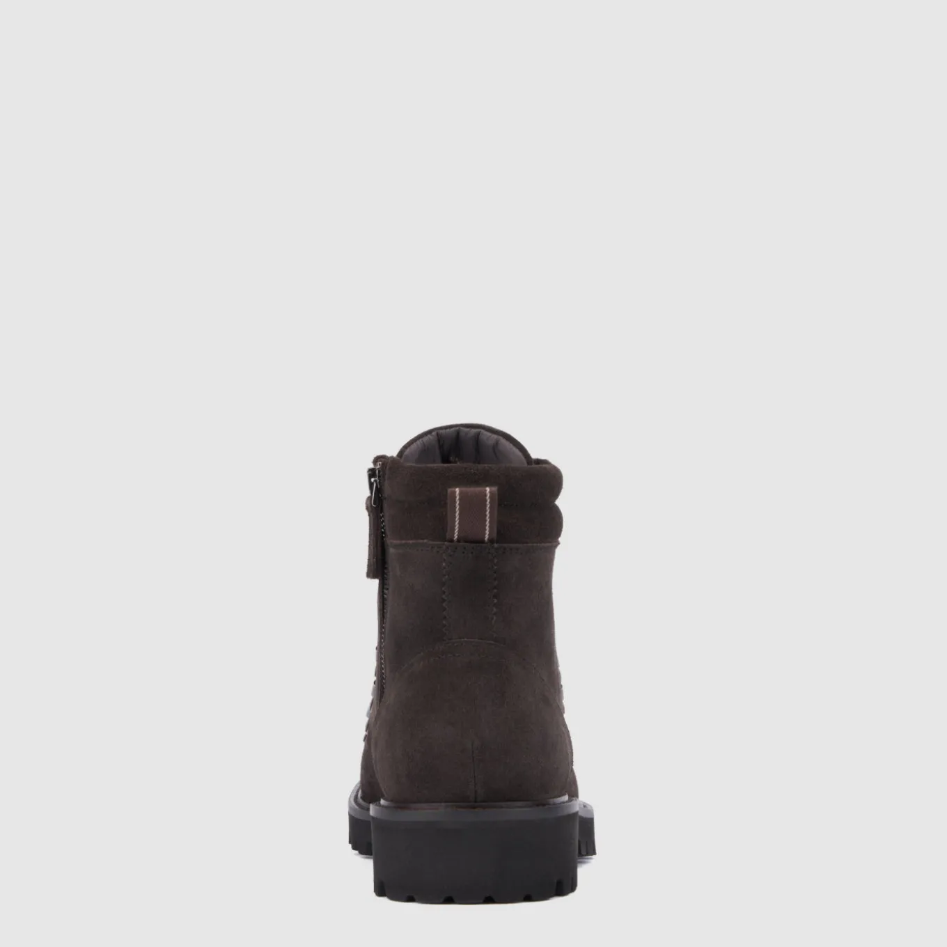 Neutral territory: Taupe, brown and black hues ensure endless versatility for our Gustavo boot. Designed in soft suede or a calf leather/nylon mix, it’s equipped with lace-up and zipper closures, plus D-ring hardware, a padded collar and loop detail on back. Trapunto seams bring a dimensional effect; a logo detail rounds out the look with understated style.
