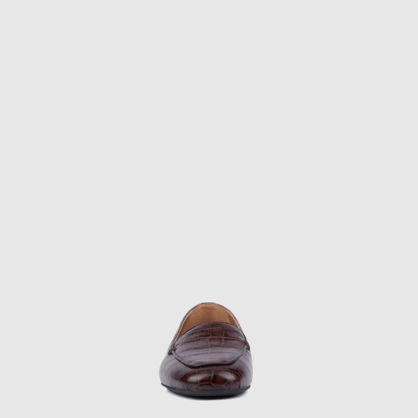 Piping infuses our Judie Flat with subtle dimensional detailing. Crafted in both embossed leather for a textural effect as well as a dress suede/nappa leather combination, it does double duty: Wear it with a sleek pant at the office, or with jeans on weekends.
